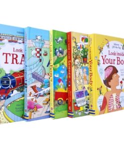 Usborne Lift the Flap Look Inside 5 Books Collection Set (Your Body, Science, Farm, Airport, Trains)