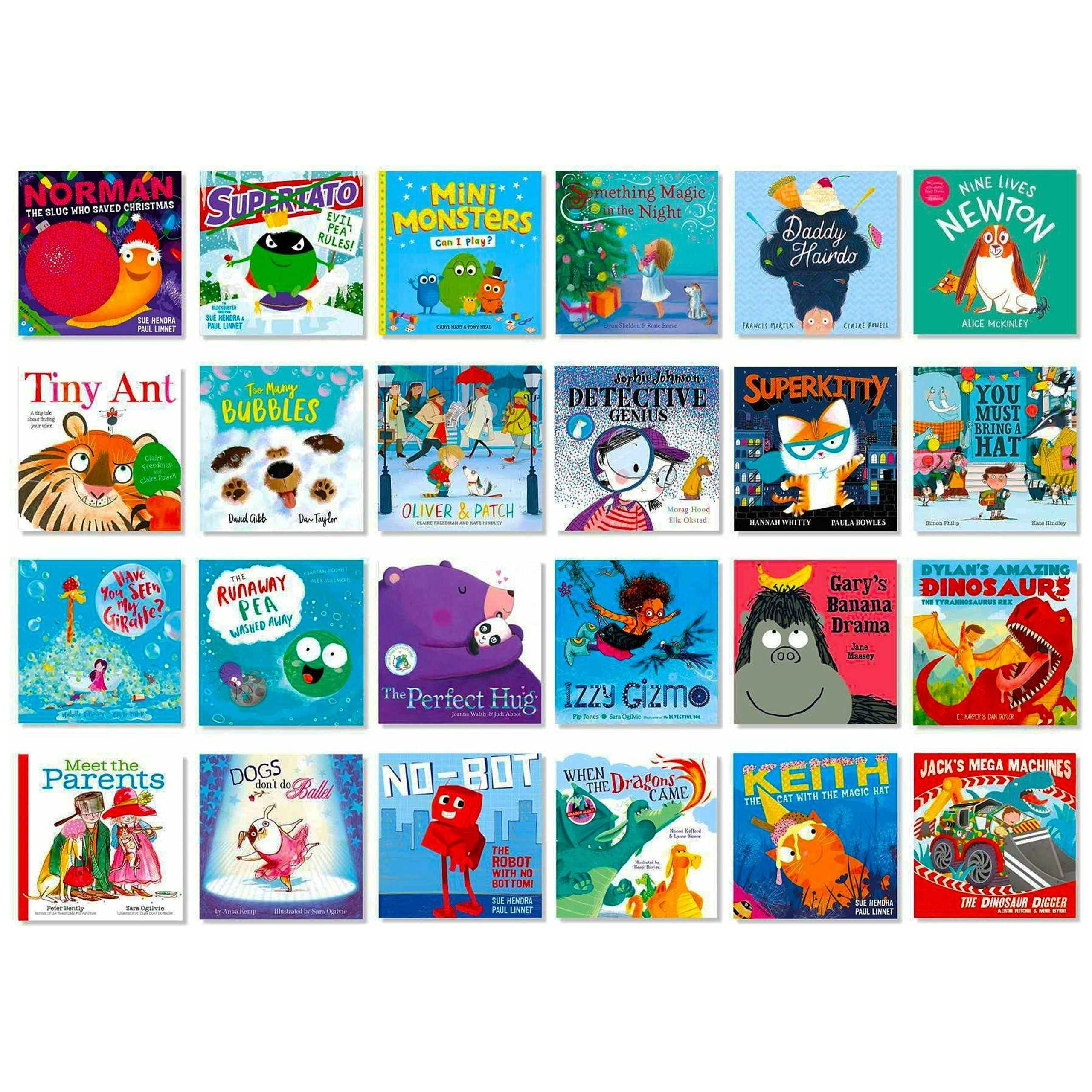 Titles include the bestselling Supertato: Evil Pea Rules by Sue Hendra and Paul Linnet, Izzy Gizmo by Pip Jones and Sara Ogilvie (illustrator of Hospital Dog) and The Runaway Pea Washed Away by Kjartan Poskitt and Alex Wilmore. Also included are books from Claire Freedman (author of the Aliens Love Underpants series), Caryl Hart (illustrator of the Albie series), Benji Davies (author illustrator of The Storm Whale), Claire Powell (illustrator of The Night Before The Night Before Christmas) and Kate Hindley (illustrator of The Littlest Yak).