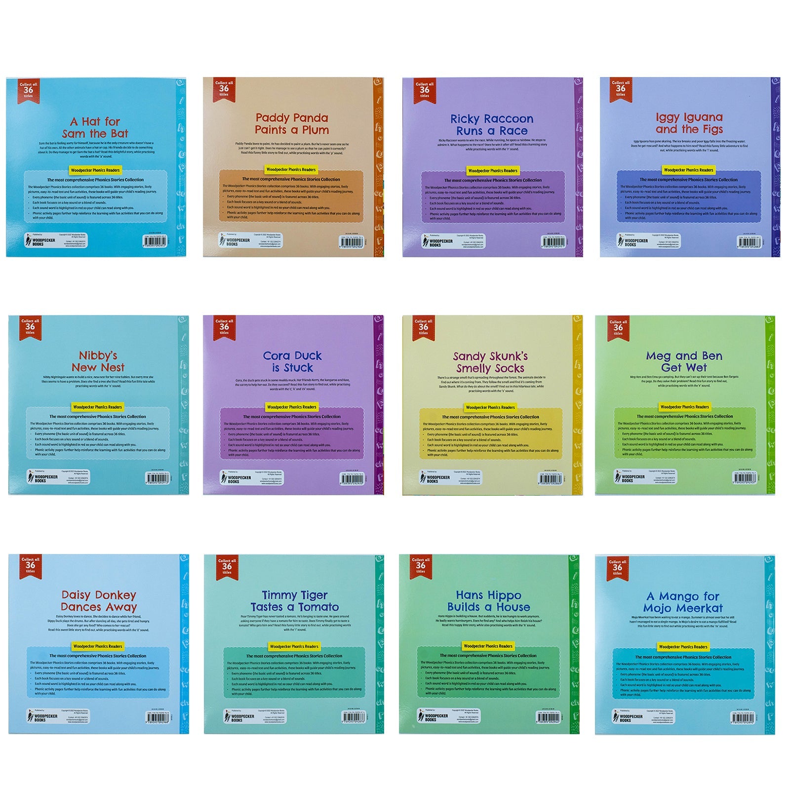 My First Phonic Sounds 12 Books Collection Box Set with Included Fun Activities(A Hat for Sam the Bat,Paddy Panda Paints a Plum,Ricky Raccoon Runs a Race,Nibby New Nest & More)(Learning Key Level 1)