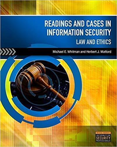 Readings And Cases In Information Security Law And Ethics