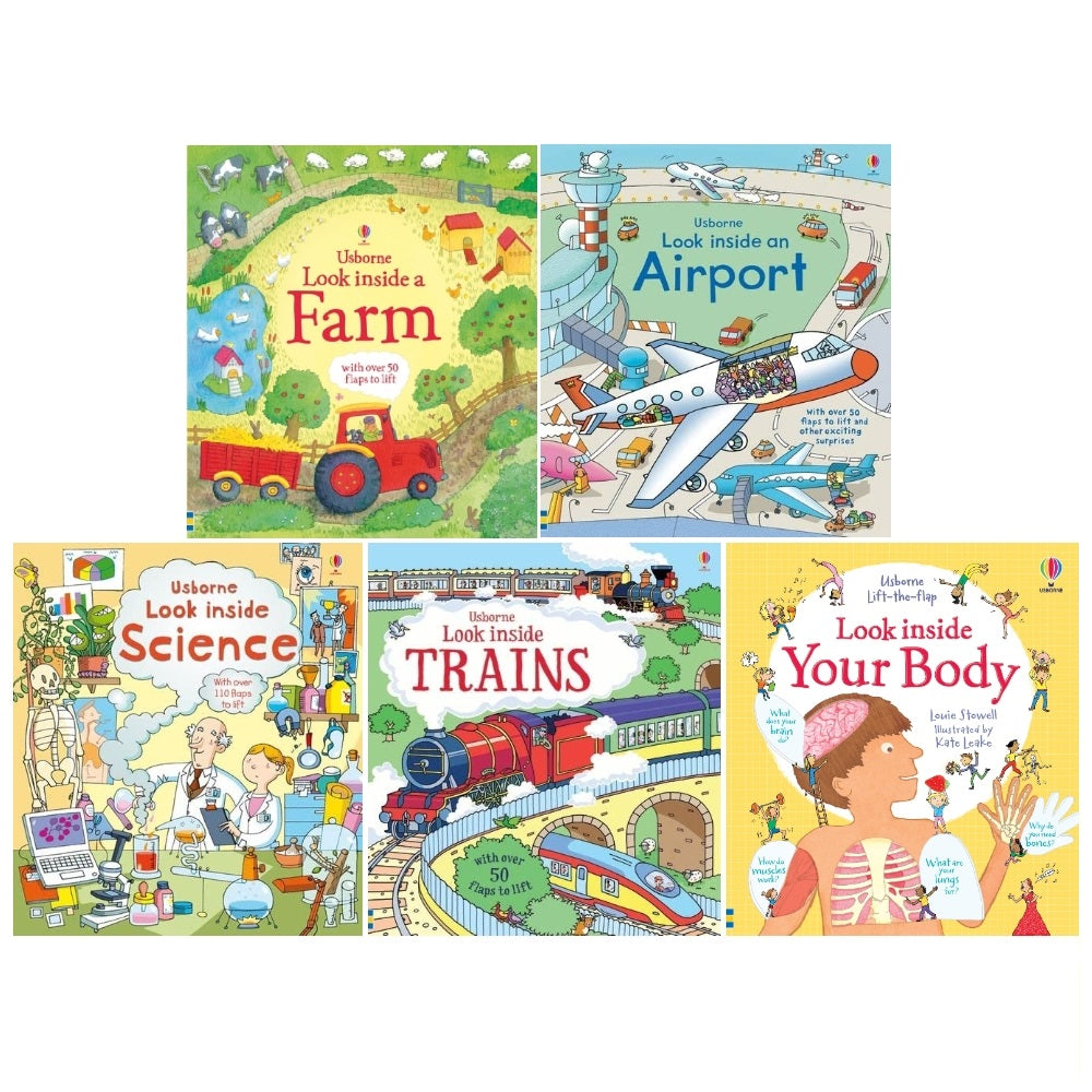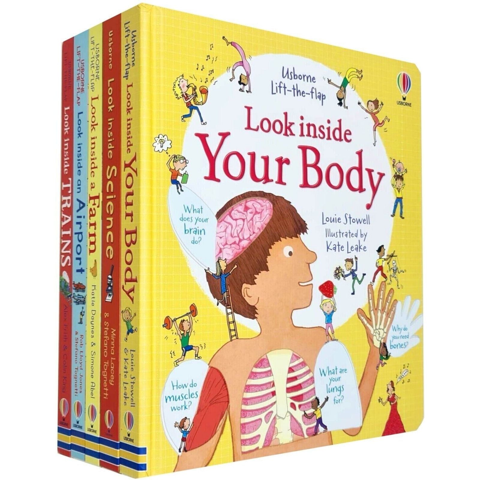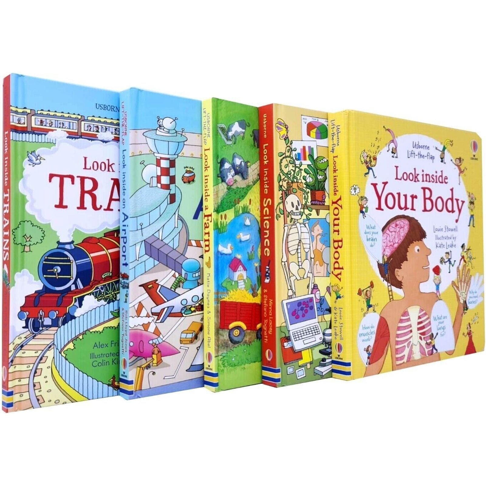 Usborne Lift the Flap Look Inside 5 Books Collection Set(Your Body, Science, Farm, Airport & Trains):
